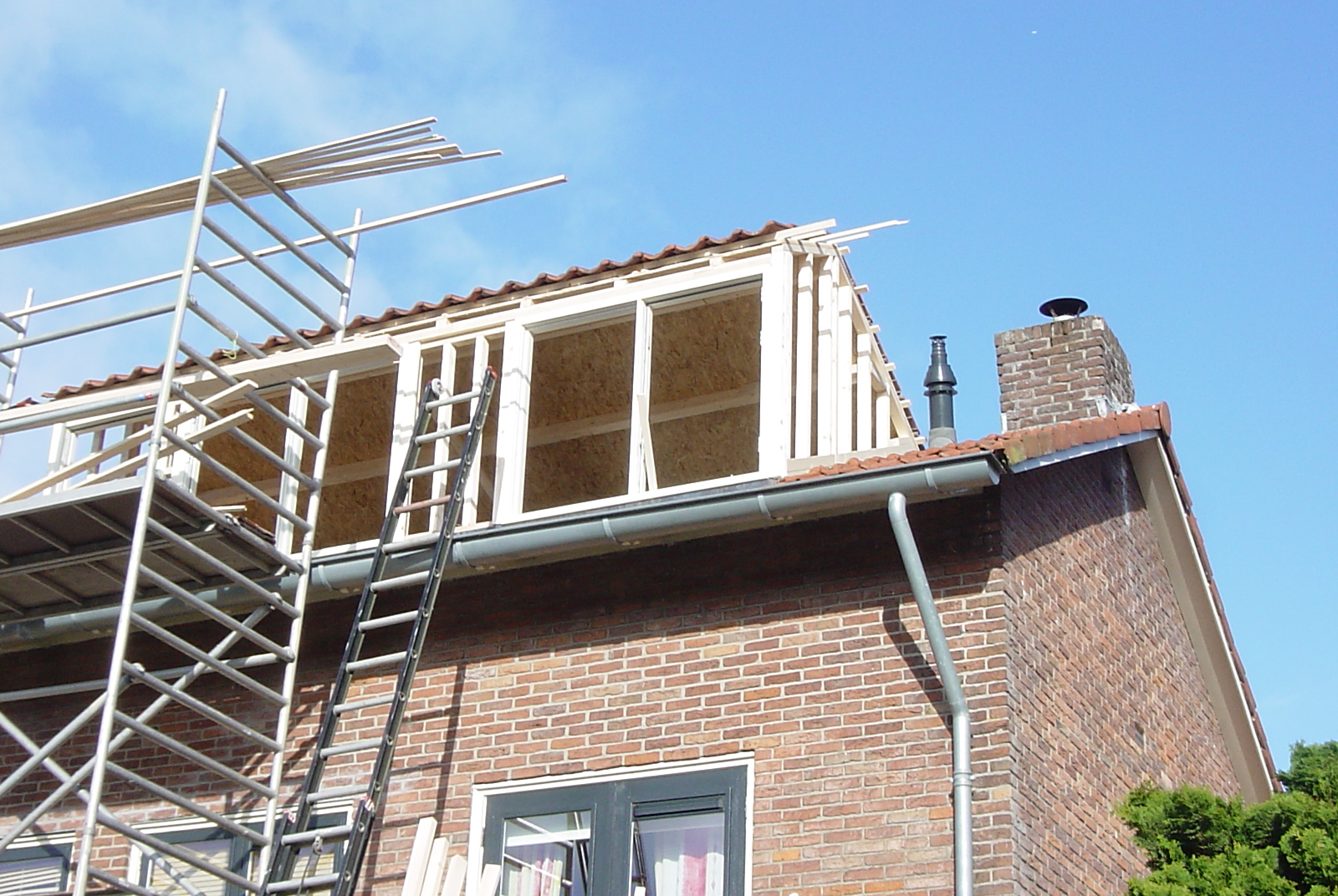 Hieronder vindt u een aantal afbeeldingen die gemaakt zijn gedurende de bouw van een dakopbouw bij een woonhuis in Amersfoort. U ziet de diverse stadia van de bouw en een deel van het aftimmeren van de dakkapel aan de binnenkant.