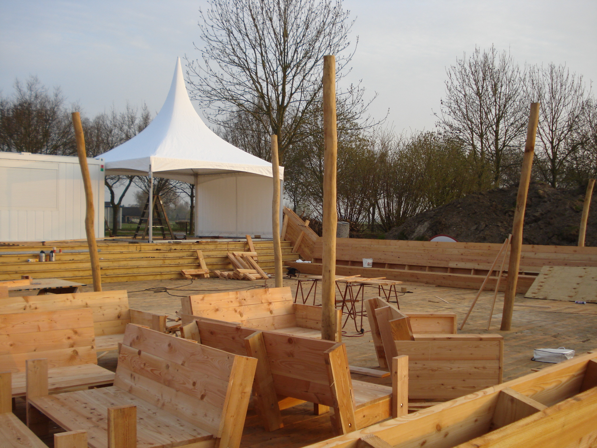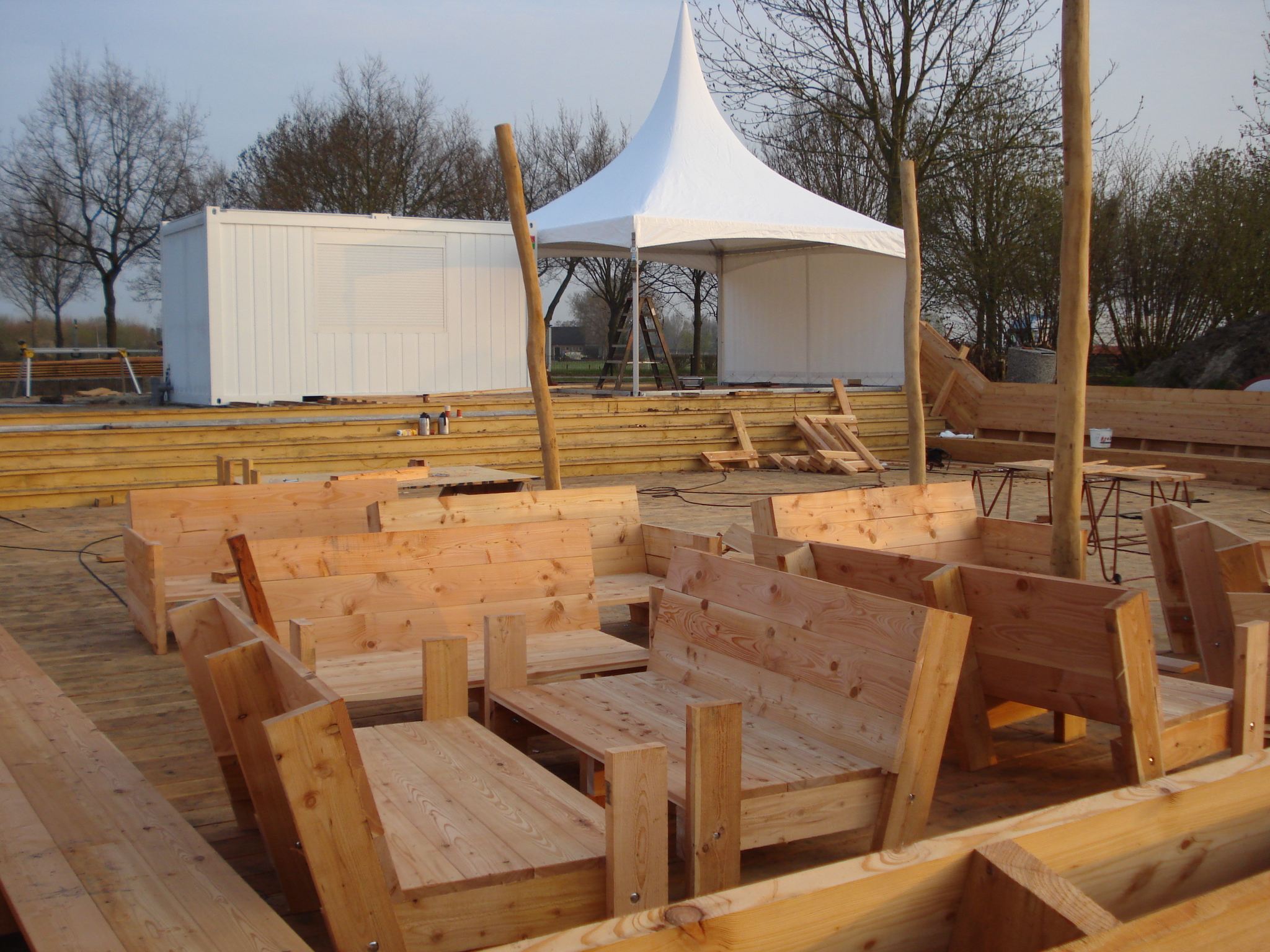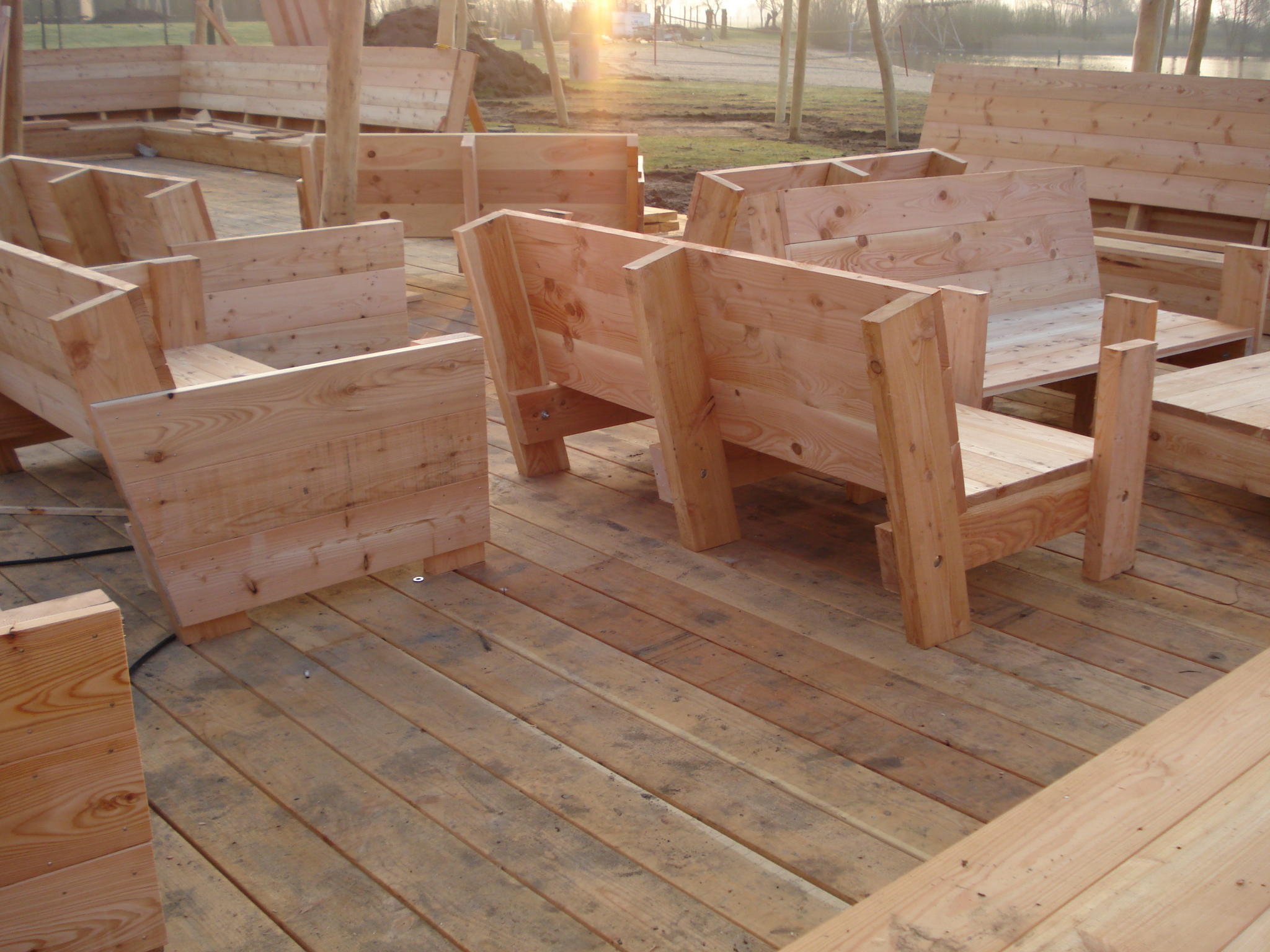 Hieronder vindt u een aantal afbeeldingen die gemaakt zijn gedurende een project rond het maken van houten buitenmeubelen. U ziet een impressie van het tot stand komen van de meubelen bij Belder beach bij Zoelen.